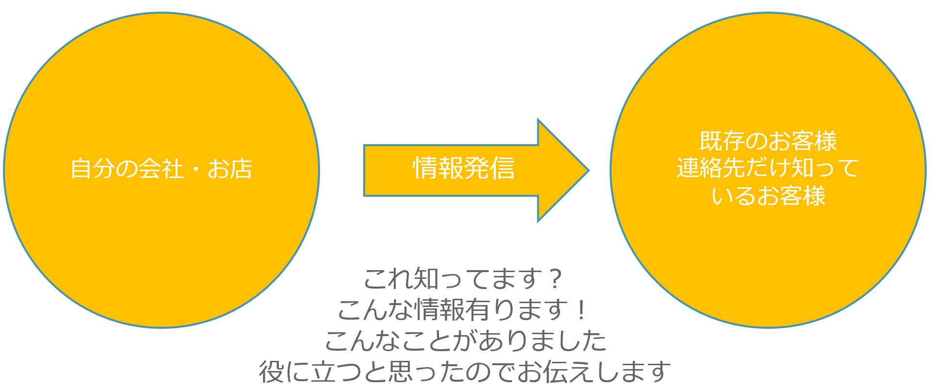 しかし、情報発信は基本的に売り込みゼロです。既存客や見込み客に対して「あなたに役立つと思ったのでこんな情報を届けますね」というのが本題です。決して営業活動(売り込み)ではありません。
